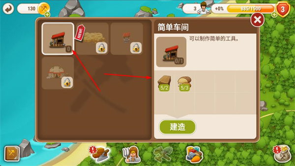4、制作工具,提升资源收集能力,持续雇用工人、收割资源、建造设施、制作工具。