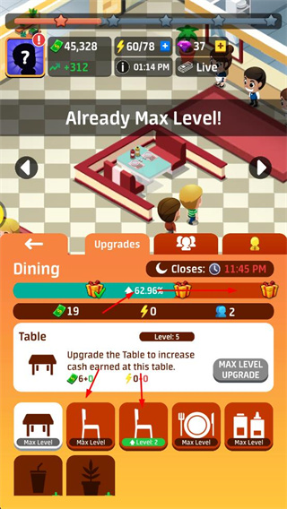 1、升级餐厅内的餐桌等设施,提升单桌收益,增加餐厅整体收入。