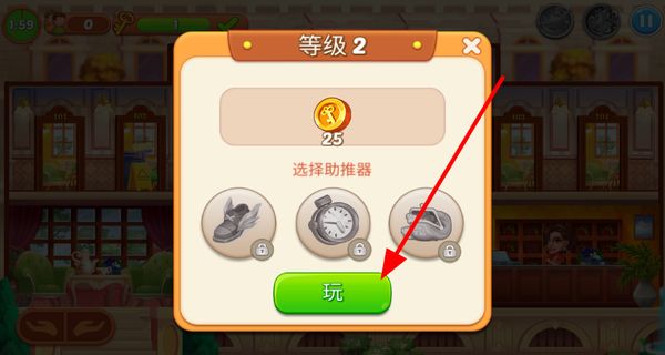 2、等级达到2级后,可选择助推器,然后点击玩,开启该等级下的酒店经营内容。