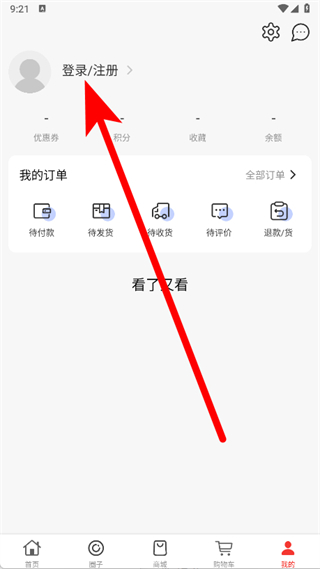 2、在我的”页面,点击登录注册区域,进入登录页面后。