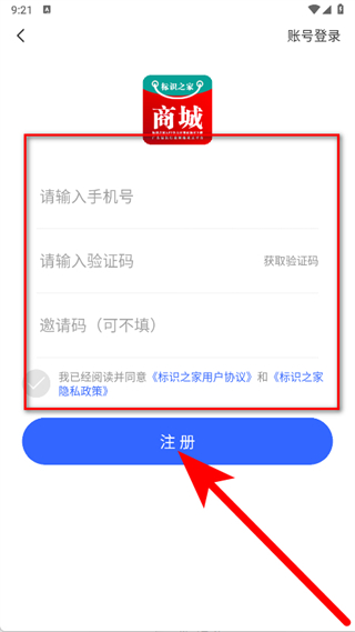 4、输入手机号,点击获取验证码,输入验证码,勾选同意相关协议后,点击注册按钮,完成注册。