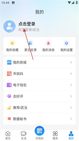1、进入i武当,在首页点击底部我的,进入个人页面。
