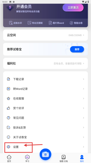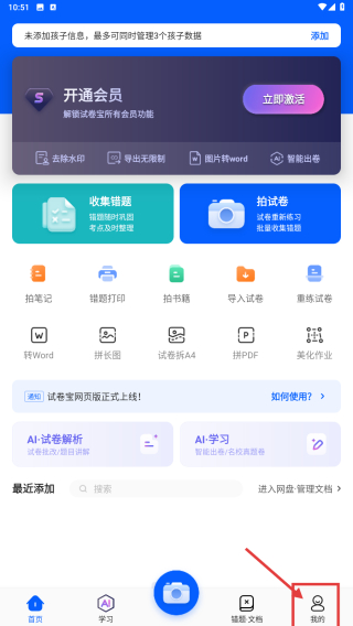1、打开试卷宝应用,点击底部我的选项,进入个人中心页面。
