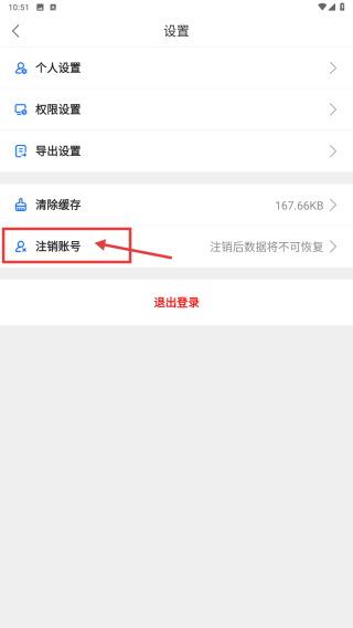 3、在设置界面,点击注销账号选项,进入注销账号风险提示页面。