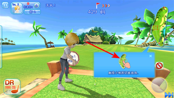 2、触摸小地图可切换视角,通过切换视角能更好地观察球场布局,为击球选择最佳路线。