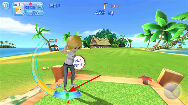 3、击球时关注力度条,在合适的力度区间点击击球,可控制击球的距离和方向,提升精准度。