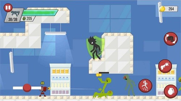 4、看到前方有道具如武器时,控制火柴人靠近获取,增强自身实力以应对后续僵尸。