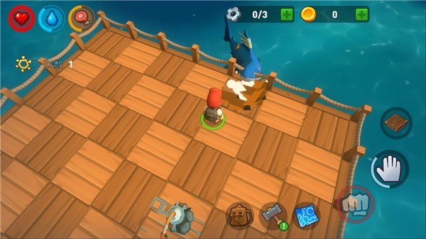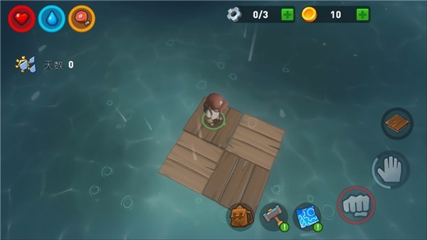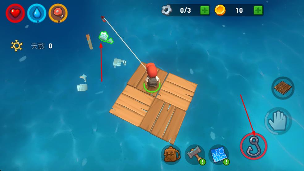 4、使用钩子收集海上资源,用于建造和制作,持续发展木筏,保障在海上的长期生存。