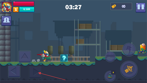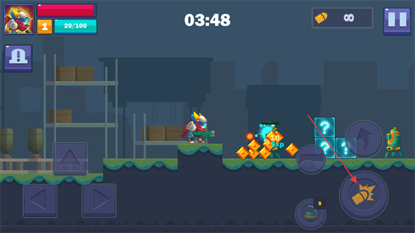 4、在前进过程中,遇到带有问号的方块,操控角色撞击获取道具或增益效果。