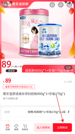 3、在奶粉商品列表页面,选择想要购买的商品进入商品详情页面。