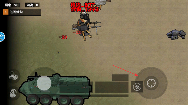 2、发现敌人靠近,点击右下方射击按钮,操控载具上的角色开枪攻击敌人。