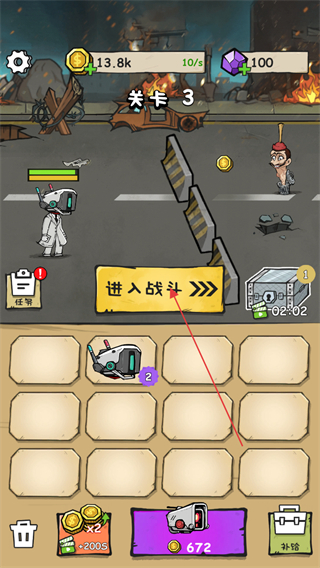 4、完成战斗后,点击“进入战斗”按钮,继续挑战新的关卡。