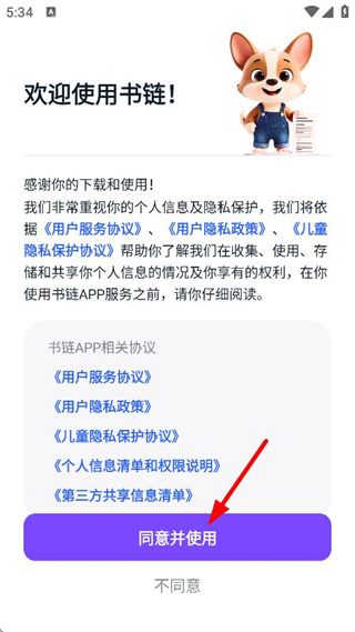 1、在欢迎使用书链页面,点击同意并使用,然后进入登录选择页面。
