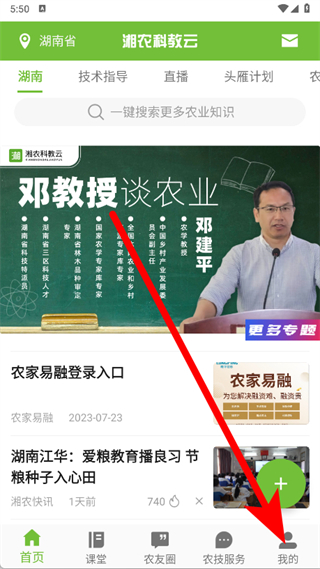 1、打开湘农科教云,点击页面底部的我的,进入个人页面。