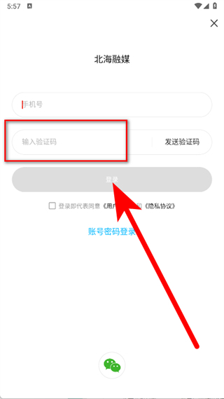 4、输入收到的验证码,勾选同意后,点击登录,完成注册登录。