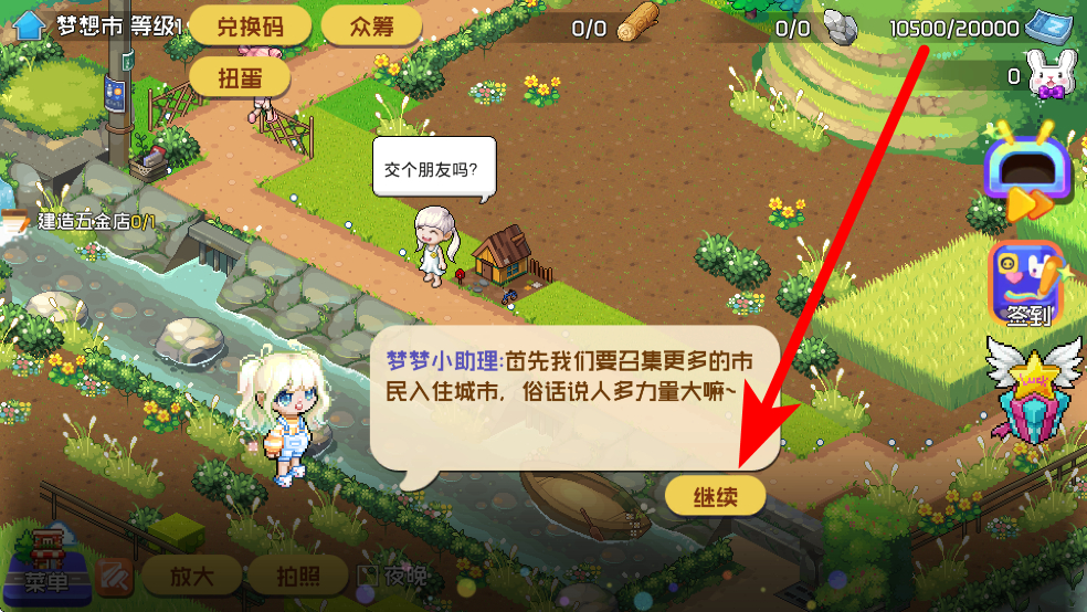 2、建造市民住宅后可招揽市民入住,完成市民发布的委托任务提升好感度,同时通过众筹、扭蛋等功能获取资源与建筑,积攒金币用于解锁更多建筑与升级城镇设施。