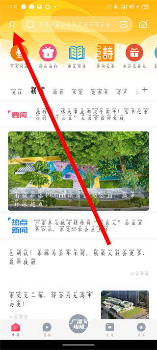 1、打开知东莞,点击页面左上角的头像图标,进入个人中心界面。