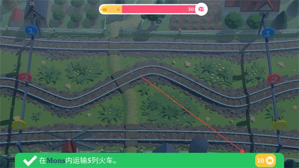 1、观察列车和轨道标识,点击列车规划行驶轨道,确保列车沿正确轨道移动。
