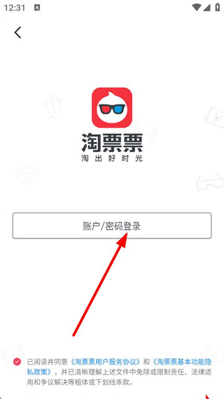 3、在登录选择页面,点击账户/密码登录,进入账户密码登录页面。