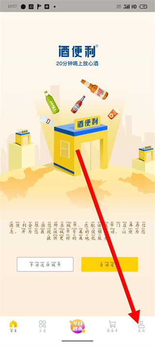 1、打开酒便利,点击页面底部的我的,进入个人页面。