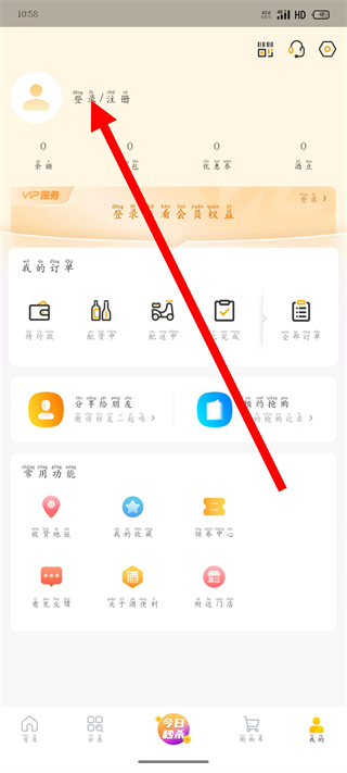 2、在个人页面中,点击登录注册区域,进入登录页面。