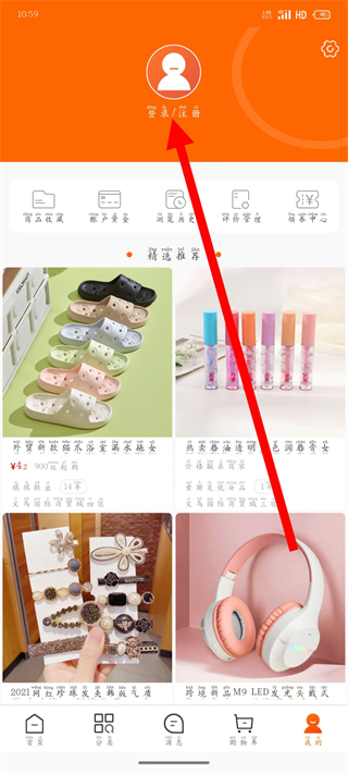 2、在个人页面中,点击登录注册区域,进入登录页面。