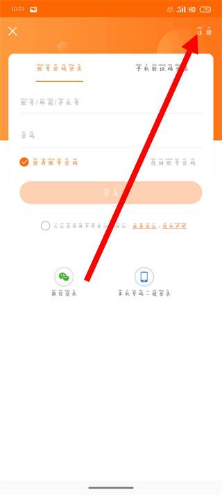 3、进入登录页面后,点击右上角的注册,进入注册页面。