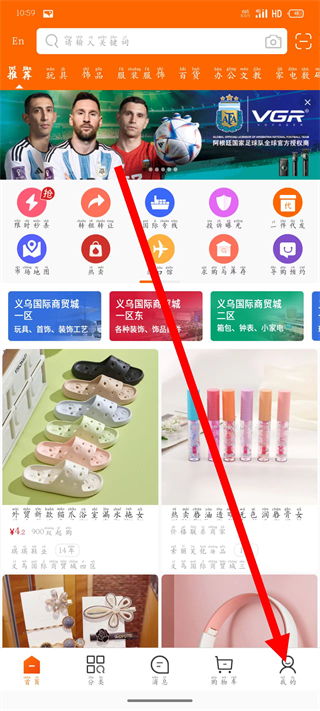 1、打开义乌购批发,点击页面底部的我的,进入个人页面。