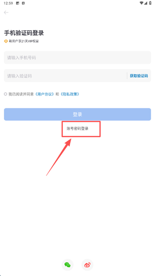 3、在登录页面当中点击账号密码登录。