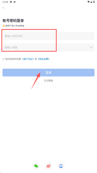 4、依次输入手机号码和密码点击登录完成登录操作。