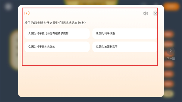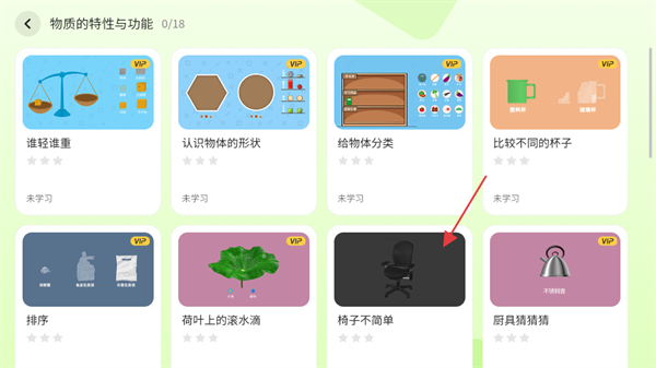 3、在闯关内容页面,点击椅子不简单可进入该知识点页面。