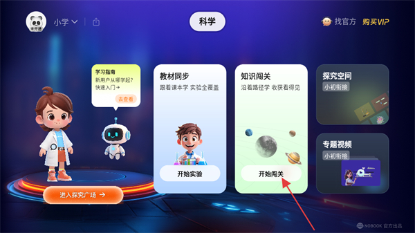 1、在nb实验室首页,点击开始闯关可进入知识闯关板块。