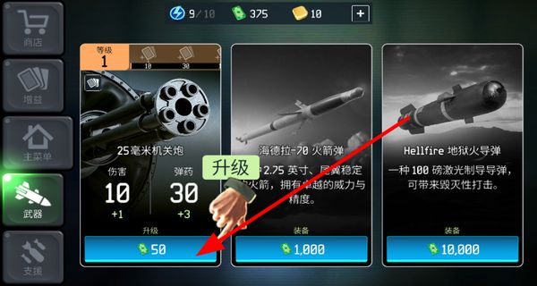 4、进入武器界面可以升级不同类型武器,大幅提升武器伤害和弹药量,显著增强战斗能力,更易完成防御任务。