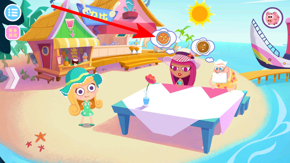 2、进入餐厅后关注顾客头上的美食需求,根据需求到厨房制作对应菜品,上菜后获得收益。