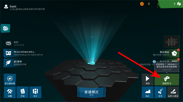 2、点击选择关卡按钮,进入关卡选择界面,挑选合适关卡挑战,逐步提升游戏难度与资源获取效率。