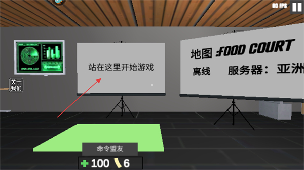 1、站在站在这里开始游戏的绿色区域,进入游戏场景。