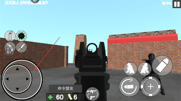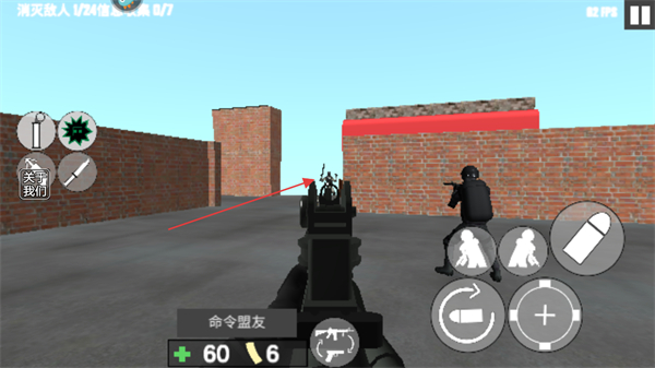 3、瞄准敌人,发射子弹消灭他们,同时可指挥盟友协同作战。