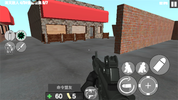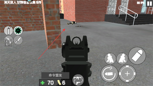 2、利用右侧射击按键发射子弹消灭敌人,同时可借助掩体躲避敌人攻击。