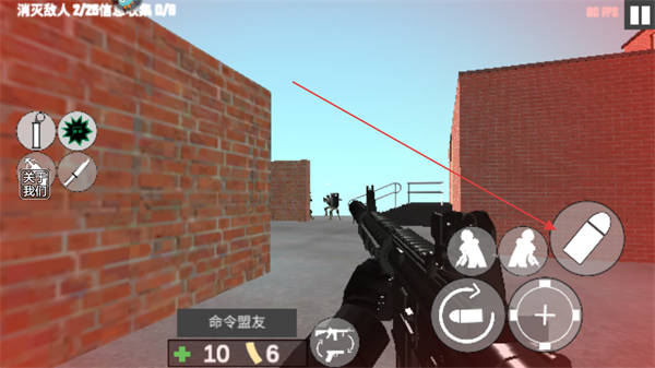 3、根据战斗情况,使用右侧的道具按键如手榴弹辅助攻击,提升消灭敌人的效率。