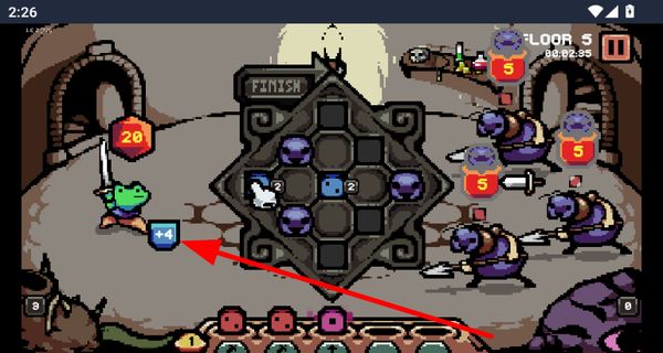 3、将骰子放入中间棋盘的不同位置加成攻击力,通过合理布局来发动攻击,与敌人展开战斗。