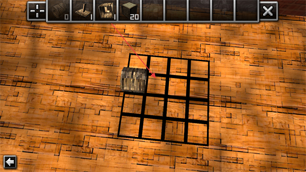 1、在建造界面,选择不同的方块如木质方块,在网格区域放置方块,搭建建筑或防御工事。