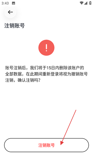 4、在注销账号确认页面,点击底部的注销按钮,即可成功注销账号。