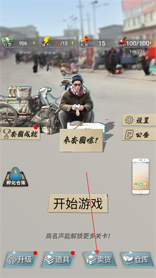 1、在主界面点击卖货,进入物品交易环节。