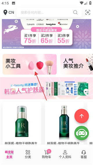 1、在HKMall首页,点击美妆小工具,可进入化妆工具配件板块。