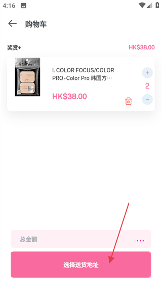 4、在购物车页面,点选择送货地址可完成商品购买流程。