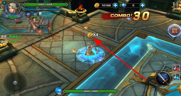3、点击攻击按钮发动连续攻击,消灭敌人可获得高额连击数和经验值,快速提升角色等级,稳步推进地下城探索。
