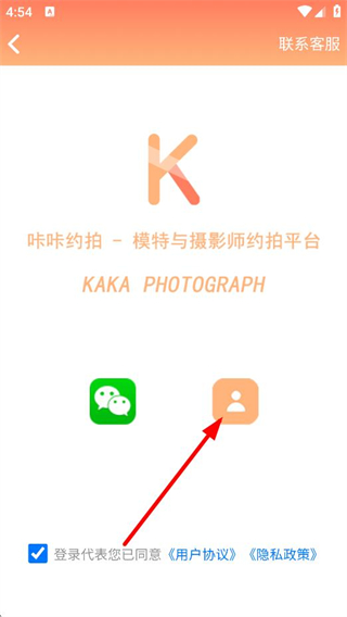 1、在咔咔约拍的主页面,点击底部我的,进入个人中心页面。
