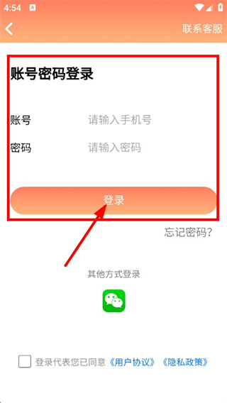 4、在账号密码登录页面,输入手机号、密码,点击登录,完成账号登录。