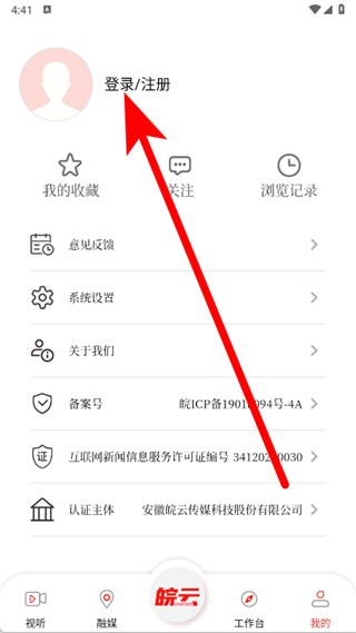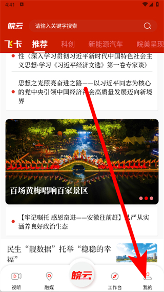 1、打开皖云,在首页,点击底部我的,进入个人页面。