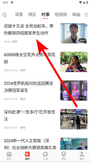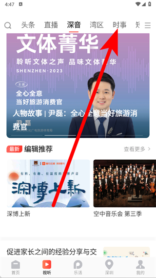2、点击顶部导航栏的时事标签,进入时事新闻频道。